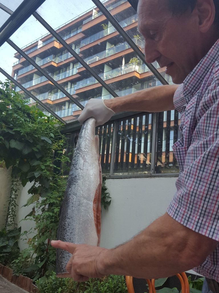 In huis gerookte zalm bij Het Zalmhuis. Ton Lemmens vertelt alles over de kweek en vangst van verse zalm.